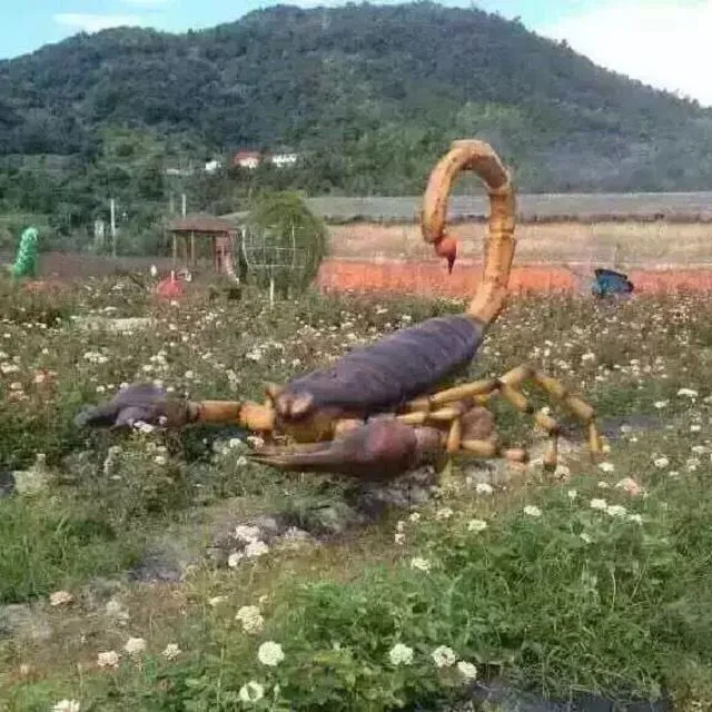 Ця симуляційна модель скорпіона на відкритому повітрі виготовлена з високоякісних матеріалів і оброблена професійно, має високу міцність і стійкість до погодних умов. Його можна використовувати як прикрасу для прикраси свого двору, парку чи відкритого простору, додаючи природної краси та екзотичного смаку вашим заняттям на природі.